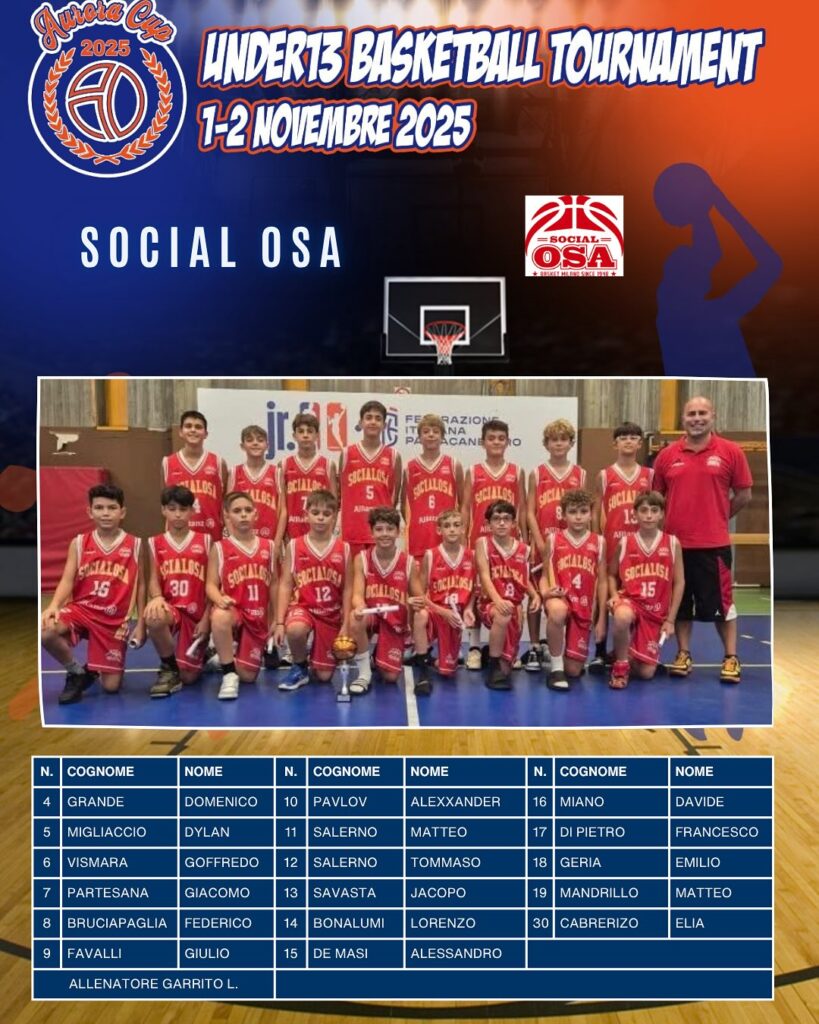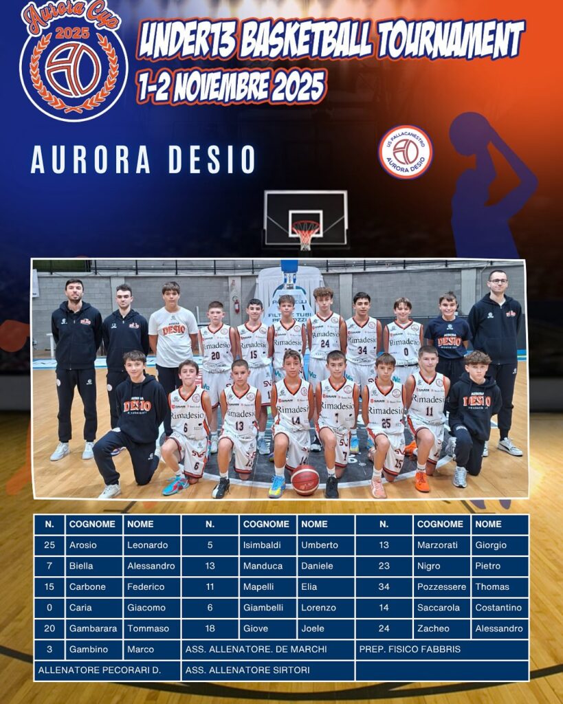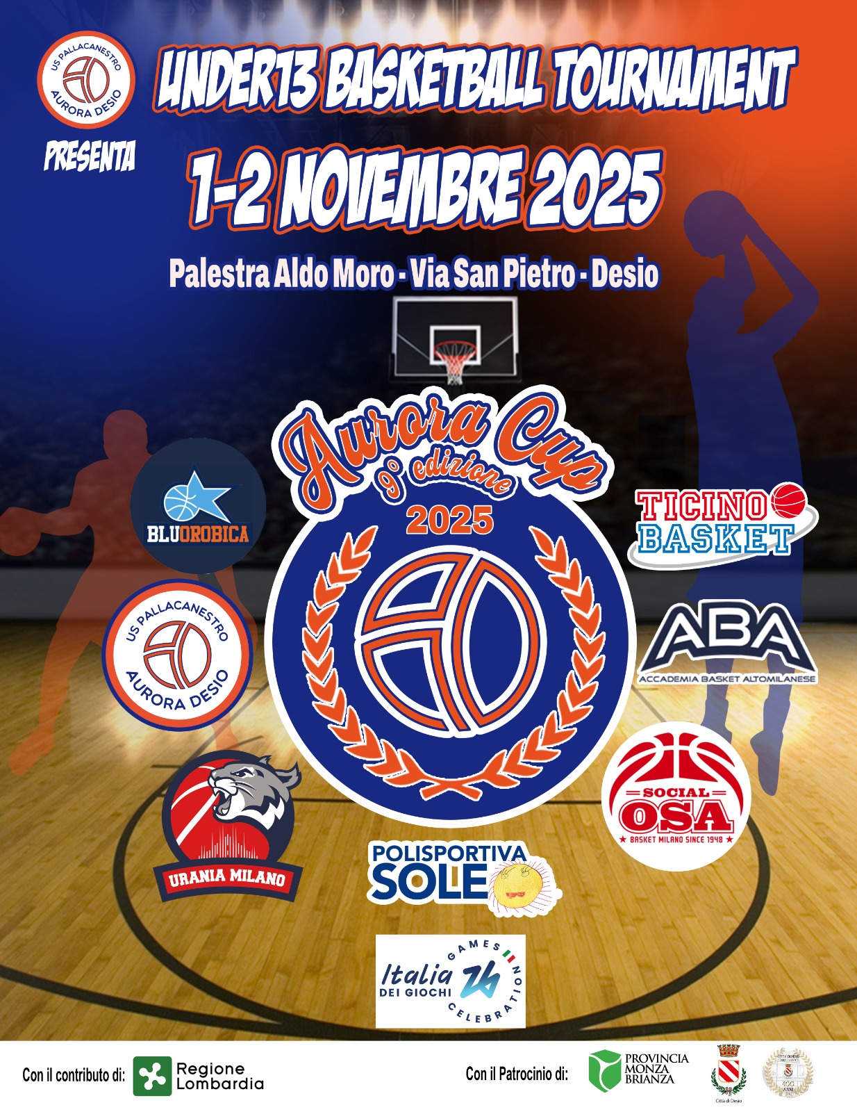 Nel prossimo weekend dal 1 al 2 Novembre 2025 si disputerà l’Aurora Cup 2025 torneo per la categoria Under 13. con 6 squadre partecipanti insieme ai nostri amici della Polisportiva Sole.