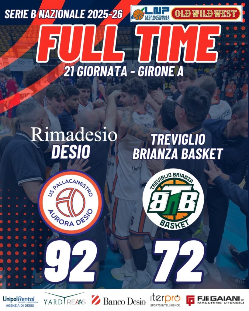 Una Rimadesio vogliosa, aggressiva e determinata supera al PalaDesio la Tav Treviglio per 92-72 tornando al successo dopo tre stop consecutivi. Una partita che i ragazzi di Quilici hanno giocato al limite della perfezione, segnando si 92 punti mandando 5 uomini in doppia cifra, ma soprattutto facendo un lavoro eccellente in difesa, con tutti gli effettivi che hanno portato il loro mattoncino per arrivare al referto rosa. Le 17 palle perse forzate agli ospiti contro le sole 4 di Desio sono lo specchio della serata, con Treviglio che non riesce mai a pareggiare l’intensità e l’energia dei bluarancio, che trovano la doppia cifra di vantaggio già nel primo quarto costringendo la squadra di Villa ad inseguire per 40′.