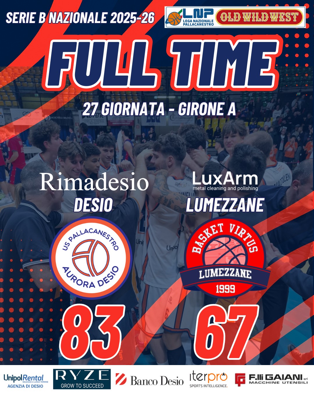 Rimadesio – LuxArm Lumezzane 83-67 (19-18, 20-18, 26-7, 18-24)